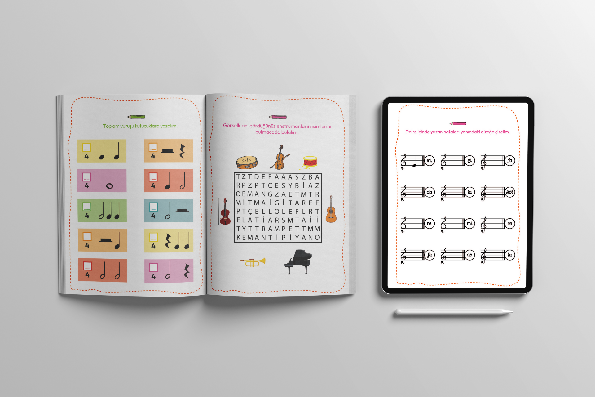 Müzik Etkinlikleri 2. Kitap, 5–15 yaş arası çocuklar için hazırlanmış olup ritim bilgisini geliştirmeye odaklanır. Daha fazla boyama, işaretleme ve masallaştırılmış etkinliklerle müzik öğrenimini eğlenceli hale getirir. Öğretmenlerin sınıfta, ebeveynlerin evde kolayca uygulayabileceği pratik içerikler sunar.