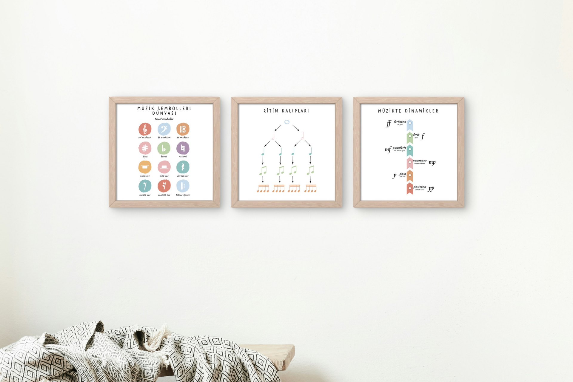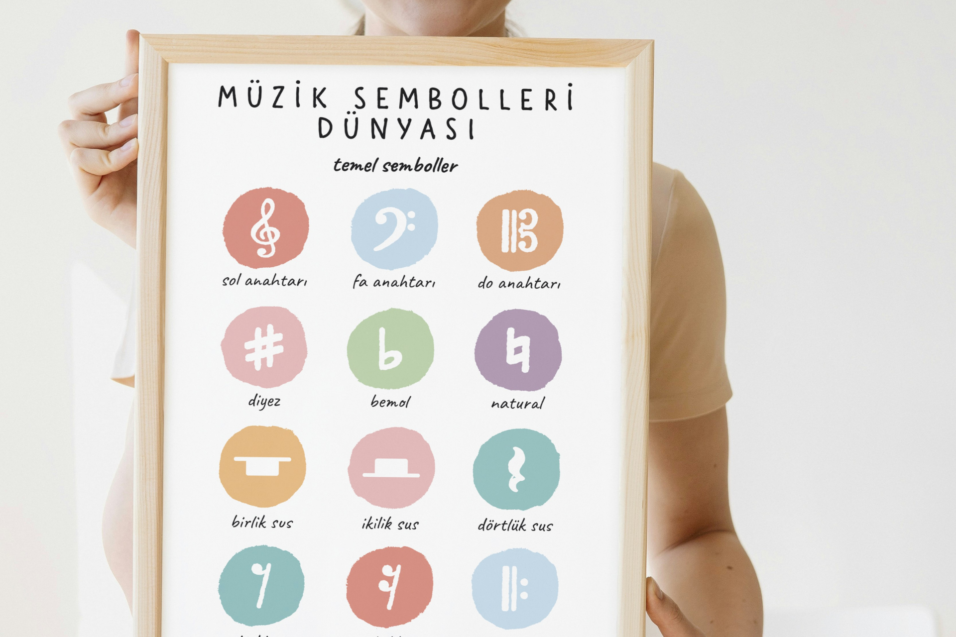 Müzik eğitimini görselleştirerek kolaylaştıran, hem sınıflarda hem de evlerde kullanılabilecek kapsamlı bir poster setidir. Dosya içinde 6 farklı poster bulunur: Dinamikler, Piyano, Enstrümanlar, Nota, Semboller ve Ritim Kalıpları.
