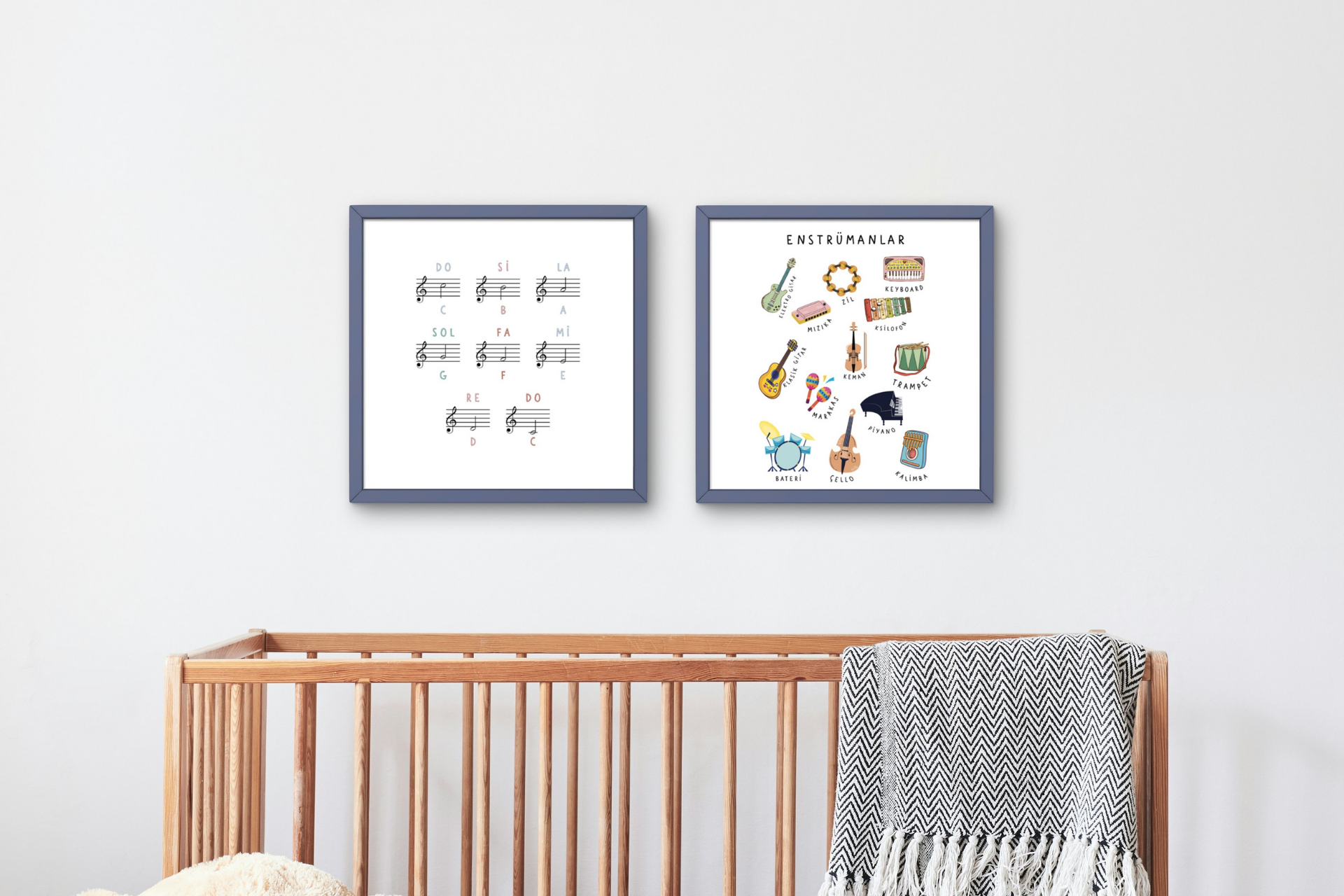 Bu set, öğrencilerin görsel hafızasını güçlendirir, ritim ve nota bilgisini pekiştirir, enstrüman ve sembolleri kolayca öğrenmelerini sağlar. Modern tasarımı sayesinde hem eğitici hem de dekoratif bir etki yaratır.