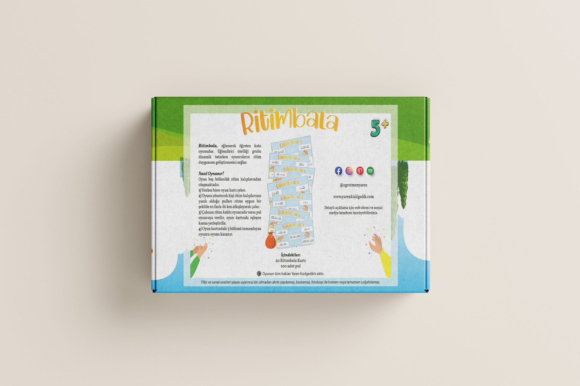 4. sınıftan lise öğrencilerine kadar kullanılabilecek, ritim öğrenimini oyunlaştıran eğlenceli bir kutu oyunudur. Hem sınıf ortamında hem de evde arkadaşlarla oynanabilir.